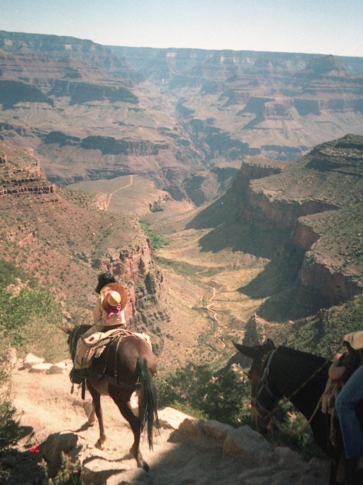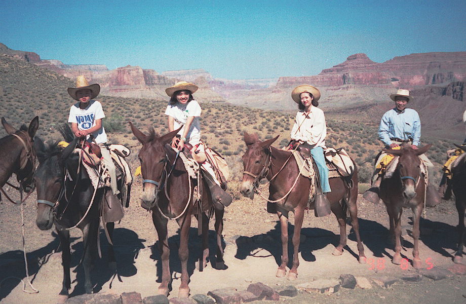 片道5時間、壮大なグランドキャニオンの絶壁の道を乗馬で下り・登りする、正に忘れ難い旅でした。